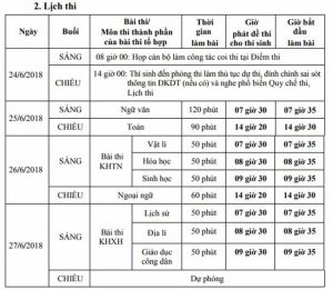 Lịch thi chính thức kỳ thi THPT quốc gia năm 2018